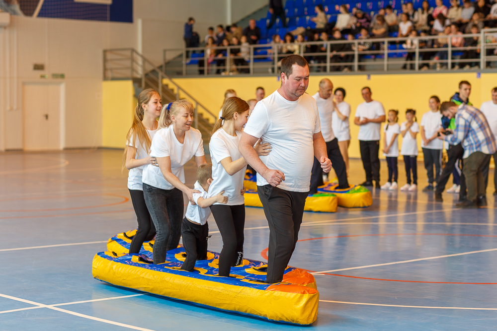 Программа спартакиады состояла из четырех увлекательных эстафет-испытаний: «Кольцеброс», Кубик-рубик», «Лошадиная сила» и «Конкурс пап». Суть каждой из них – в командном преодолении сложностей, для чего всем членам семей нужно было действовать максимально быстро и слаженно. Роль лидеров команд неизменно исполняли папы, а мамы и дети старались не отставать. Каждая семейная команда проявила сплочённость, умение понимать друг друга.