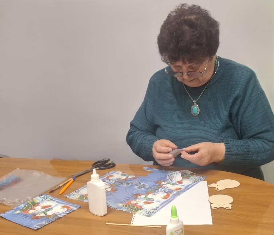 Получатели социальных услуг студии рукоделия «Самоделкин» Икрянинского комплексного центра приняли участие в мероприятии, на котором создавали уникальные игрушки в технике декупаж. Это техника декорирования предметов с помощью вырезанных из бумаги рисунков.